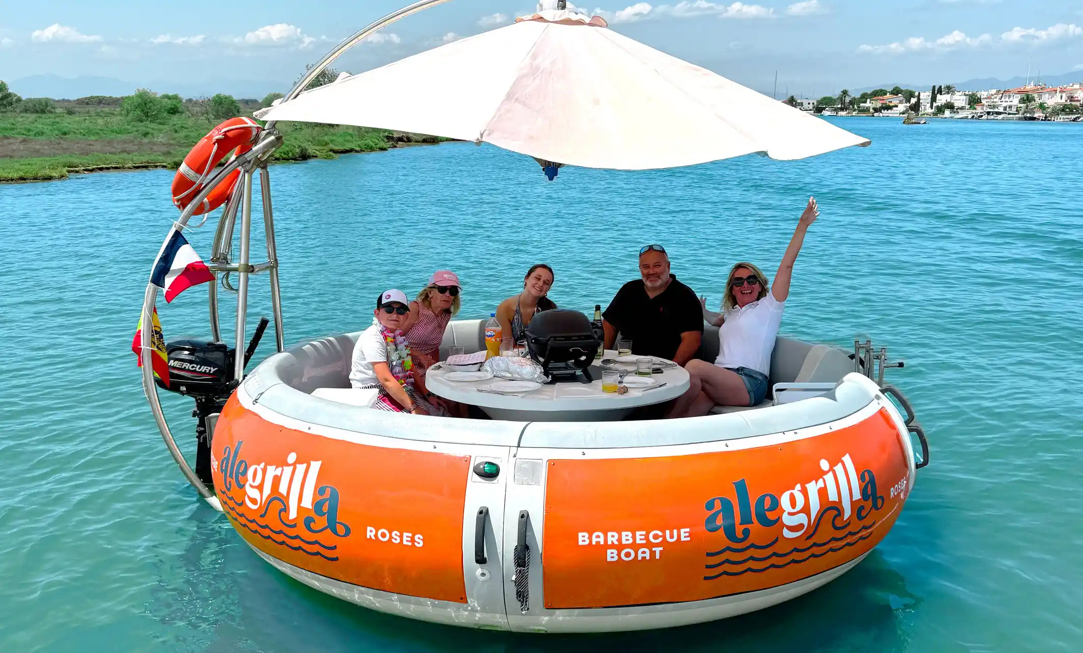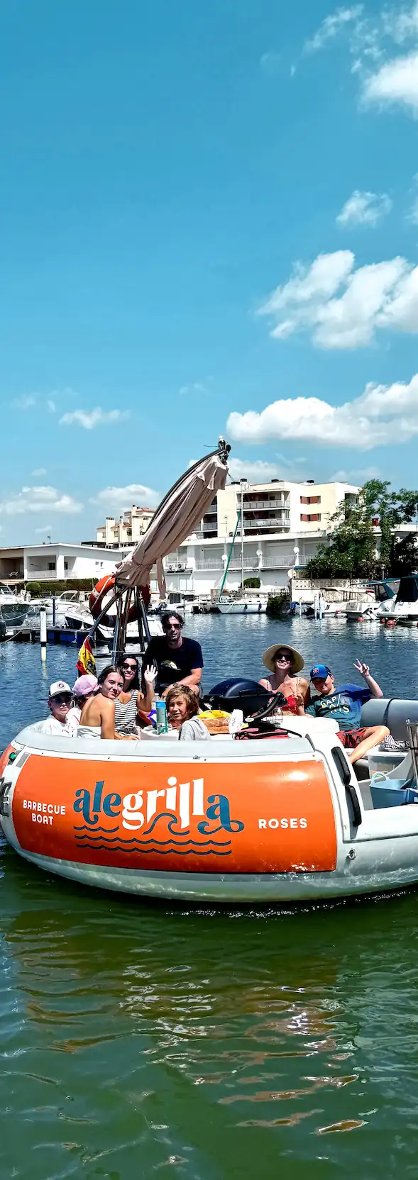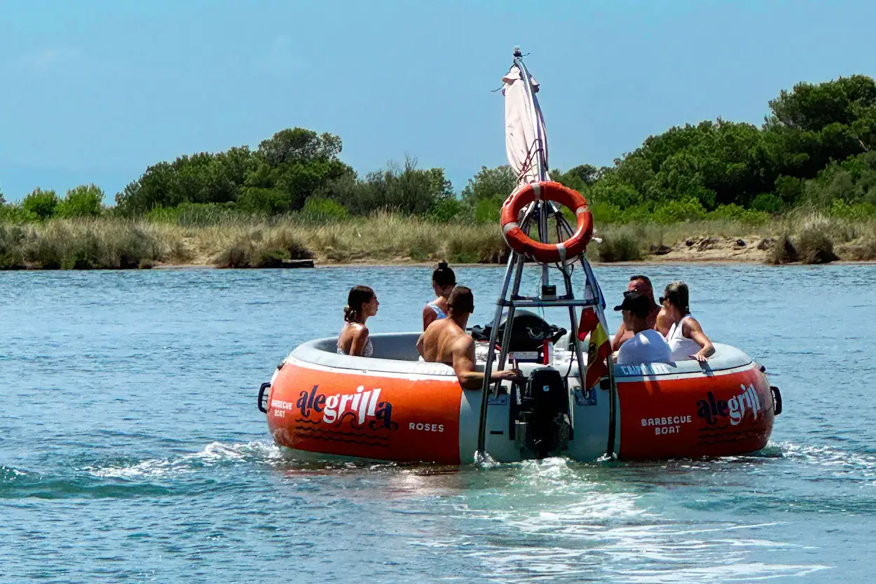 Un cercle parfait qui glisse doucement sur l’eau. Autour de vous, la Méditerranée scintille. Au centre de la table : un barbecue crépite.Vous êtes entre amis, en famille, un verre à la main. Pas de voisins. Pas de bruit. Juste vous. Le soleil. Le clapotis. Et l’odeur irrésistible de grillades qui dorent lentement. Bienvenue à bord de votre Barbecue Boat à Rosas.